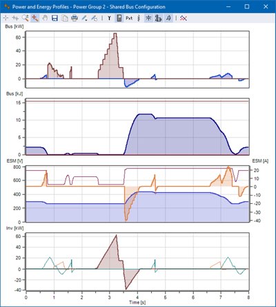 Users can drill down deep into the calculations and explore drive simulations under various conditions. With a simple mouse click at any point in the cycle, it is possible to investigate various scenarios ranging from voltage fluctuations to network interruptions. The detailed model is calculated in real time. The user is able to examine the energy storage, the power flow and the voltage levels and currents throughout the system at any time in the cycle. As a result, in addition to the entire servo drive system, the program now sizes the energy storage solution to meet the application requirements.