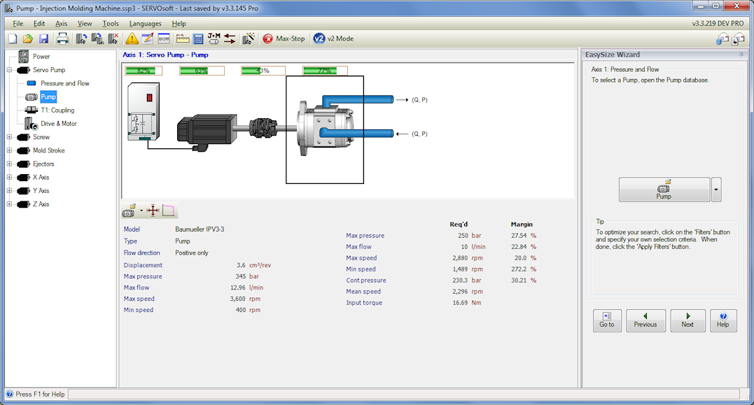 ControlEng Corporation, working in close partnership with Baumueller, is pleased to announce the release of the SERVOsoft® Servo Pump Option! The Servo Pump option allows users to size and select Servo Pumps, as well as Motor-Coupling-Pump combined products.