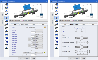 Working closely with Moog Industrial Group, we have developed the Ball Screw database feature with extensive and detailed sizing rules for Moog ball screws.
