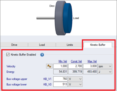 A Kinetic Buffer (KB) axis (PRO version), is used to store energy mechanically in a rotating disc, also known as a Flywheel. This energy can be used during a mains power loss to feed the DC bus with energy for a machine to finish its cycle and come to a controlled stop. During a mains power loss, the KB can also be used to absorb energy in a rapid braking event.