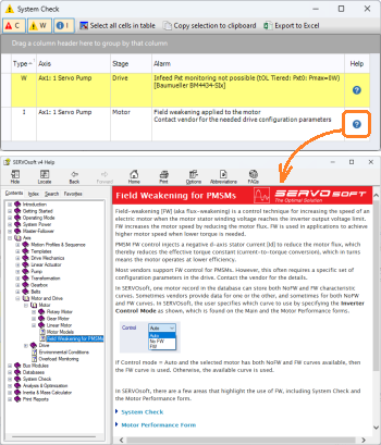 System Check adds new "Help" column, where the help icon indicates the associated help topic is available by clicking on the help icon.