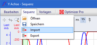 Um eine Abfolge zu importieren, wählen Sie im Menü "Abfolge > Import", wie angezeigt.