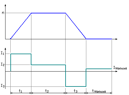 Die Antriebsauswahl beginnt mit der Auswahl des Umrichters, der den Drehmomentanforderungen des Motors für die Anwendung entspricht. Für rotierende Motoren werden die Motordrehmomentanforderungen der Anwendung anhand des Modells Motordrehmoment gegen Strom und für Linearmotoren anhand des Modells Motorkraft gegen Strom in Motorstrom umgewandelt. Die Abbildung unten zeigt ein Motorstromprofil.