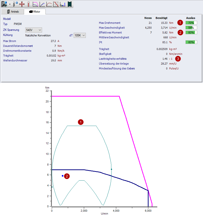 Bewegungsprofil zusätzliches Drehmoment und zusätzliche Leistung