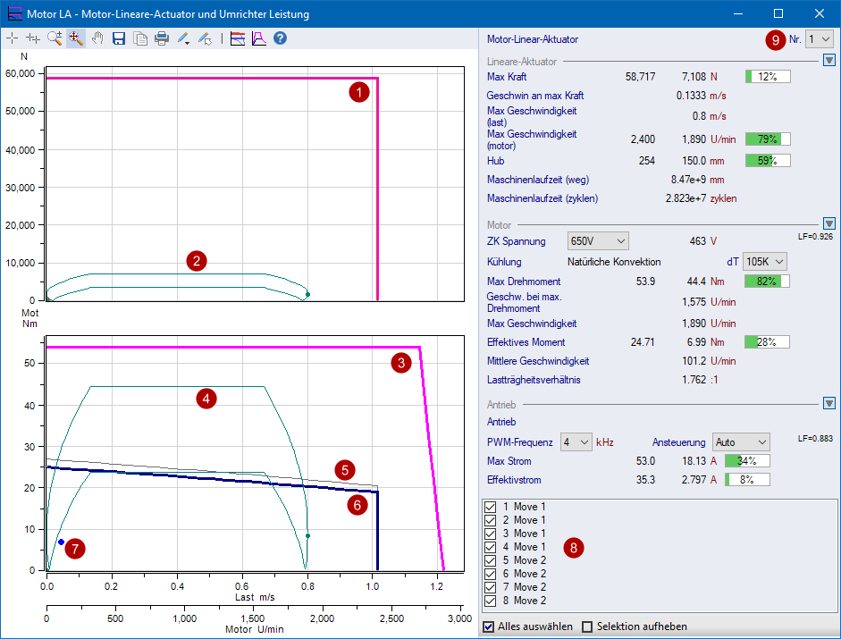 Auftragskraftprofile am Linear-Aktuator ausgang