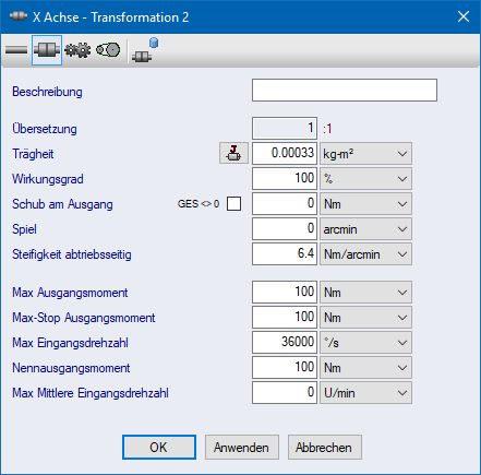 JTransf | Trägheit der Transformation am Eingang | kg-m2 |