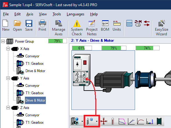 Some Drives and Infeed Modules have an internal Chopper with no internal resistor. Others have no Chopper and allow for an External Bleeder. For these cases, first select the Drive or Infeed Module. If the selected Drive or Infeed Module has an option to connect an External Bleeder, then the Bleeder Database button will be visible in the Main form beside the Drive and Motor database button as shown (and same for the Infeed Module database button). Then click the Bleeder Database button to select an External Bleeder to be connected to the Drive or Infeed Module.