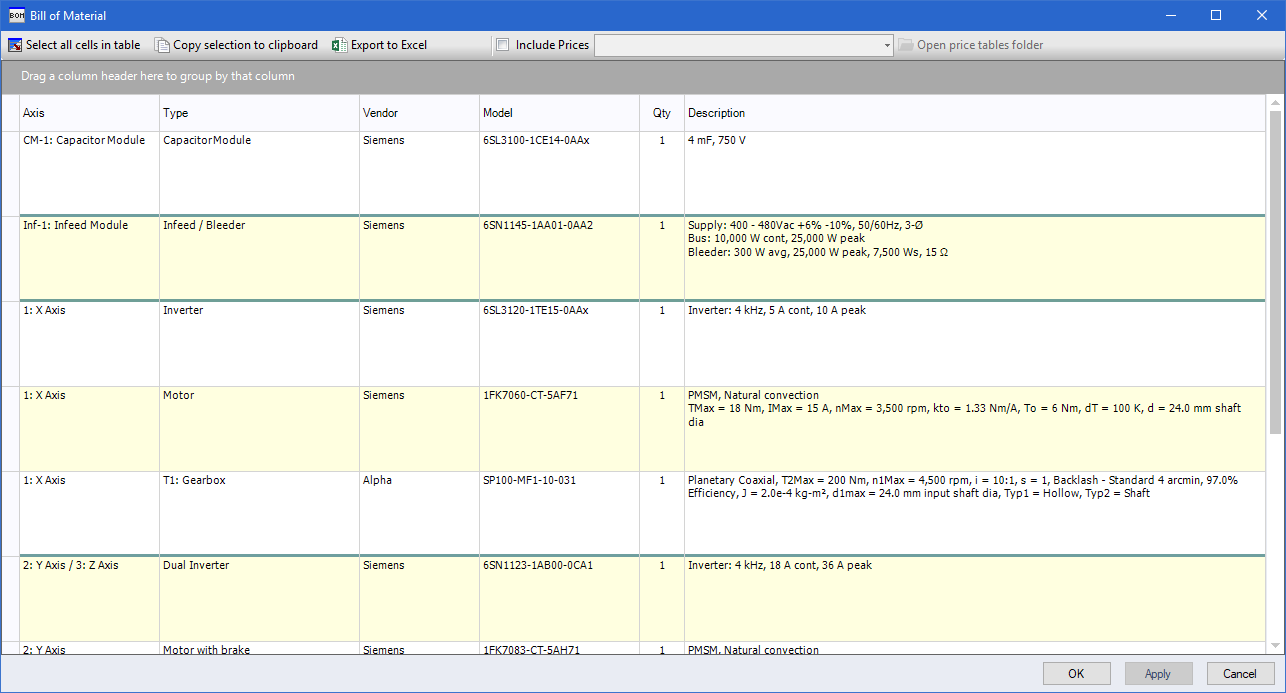 Select some or all of the cells in the table, then copy the seletion to the Clipboard. Another option is export the entire Bill of Material to a spreadsheet.
