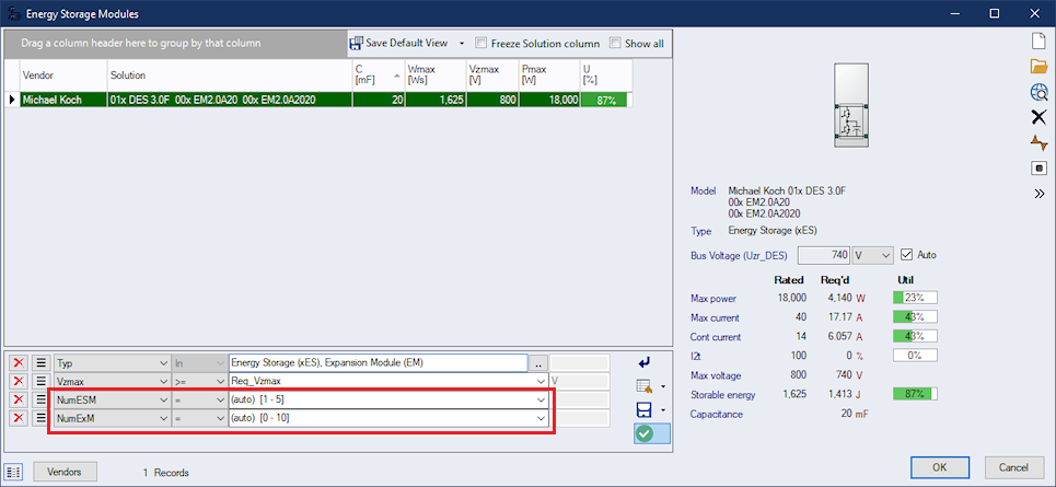 solutions listed must have 2x or 3x ExMs and the Number of ESMs is