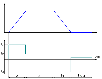 Drive selection begins with selecting the inverter that meets the application torque requirements of the motor. The motor torque requirements for the application are converted to motor current using the Torque vs Current model for rotary motors and Force vs Current model for linear motors. A motor current profile is illustrated below.
