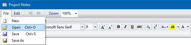 From the File menu, open a Rich Text Format (RTF) or Plain Text