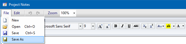 From the File menu, save the Project Notes to a Rich Text Format