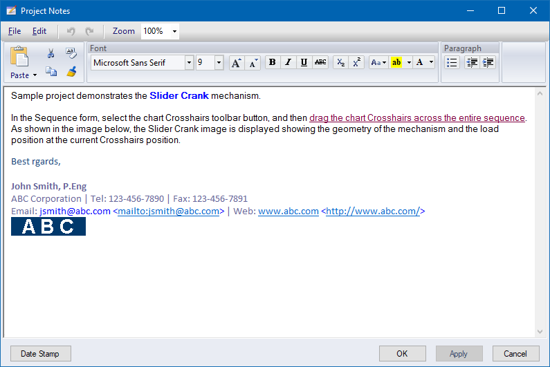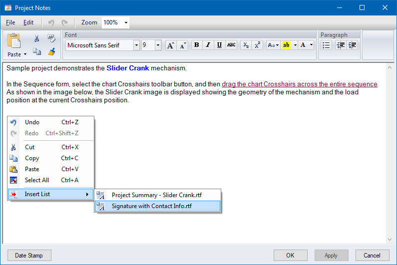 (TXT) file, and the entire contents of the Project Notes are