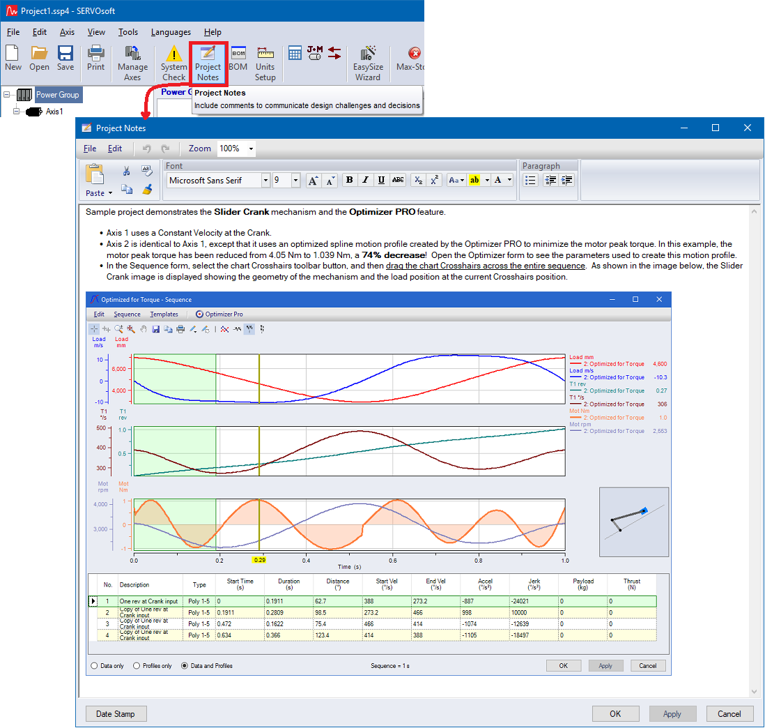 Use the Project Notes to capture design challenges, constraints,