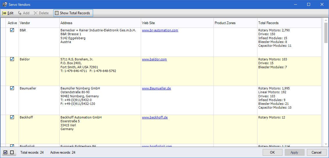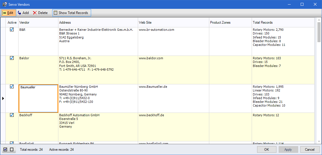 The Vendor form is in 'Selection Mode' when the checkboxes are