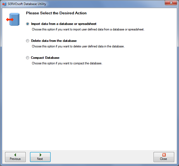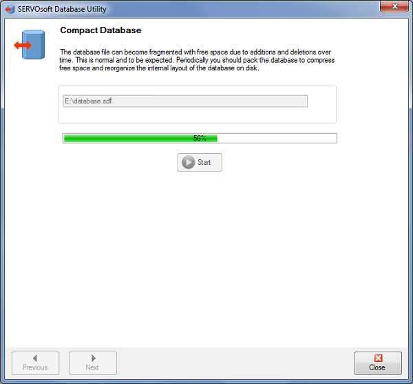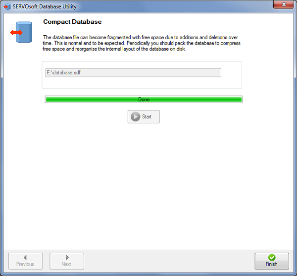 - Windows Start Menu: Start > Programs > SERVOsoft > Database Utility