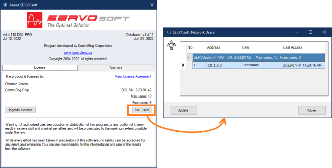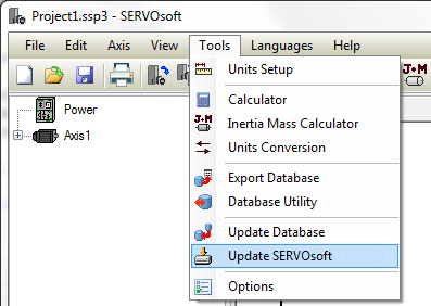 - Program and Database Updates: Run SERVOsoft, then click Tools > Update SERVOsoft