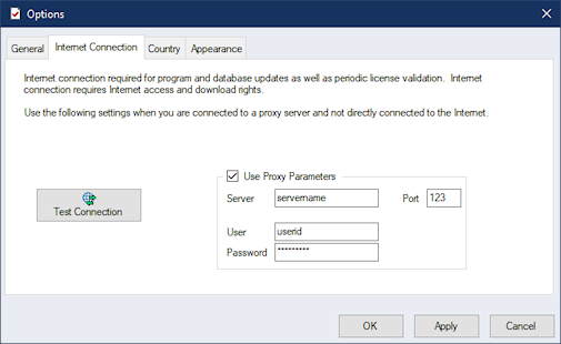 - First, ensure the proxy server settings in the Options form ('Tools > Options) are correct:
