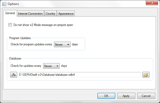 - Database Updates Only: Run SERVOsoft, then click Tools > Update Database (see Database Updates)