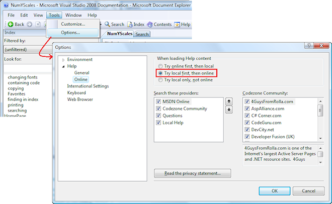 It is just a simple change in settings in the Microsoft Document Explorer. Select 'Tools > Options', and then