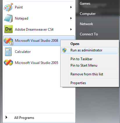 Solution: To run Visual Studio as an Administrator, right-click on Visual Studio and select "Run as Administrator" per the screenshot below. The control should drop on the form with no exceptions being generated.