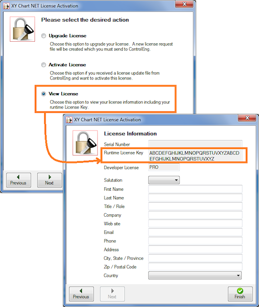 - In your application, set your Runtime License Key. The LicenseKey property is an application Global variable, meaning you only need to set it once for one instanceof XY Chart NET. And then it applies to all XY Chart NET instances in your application.